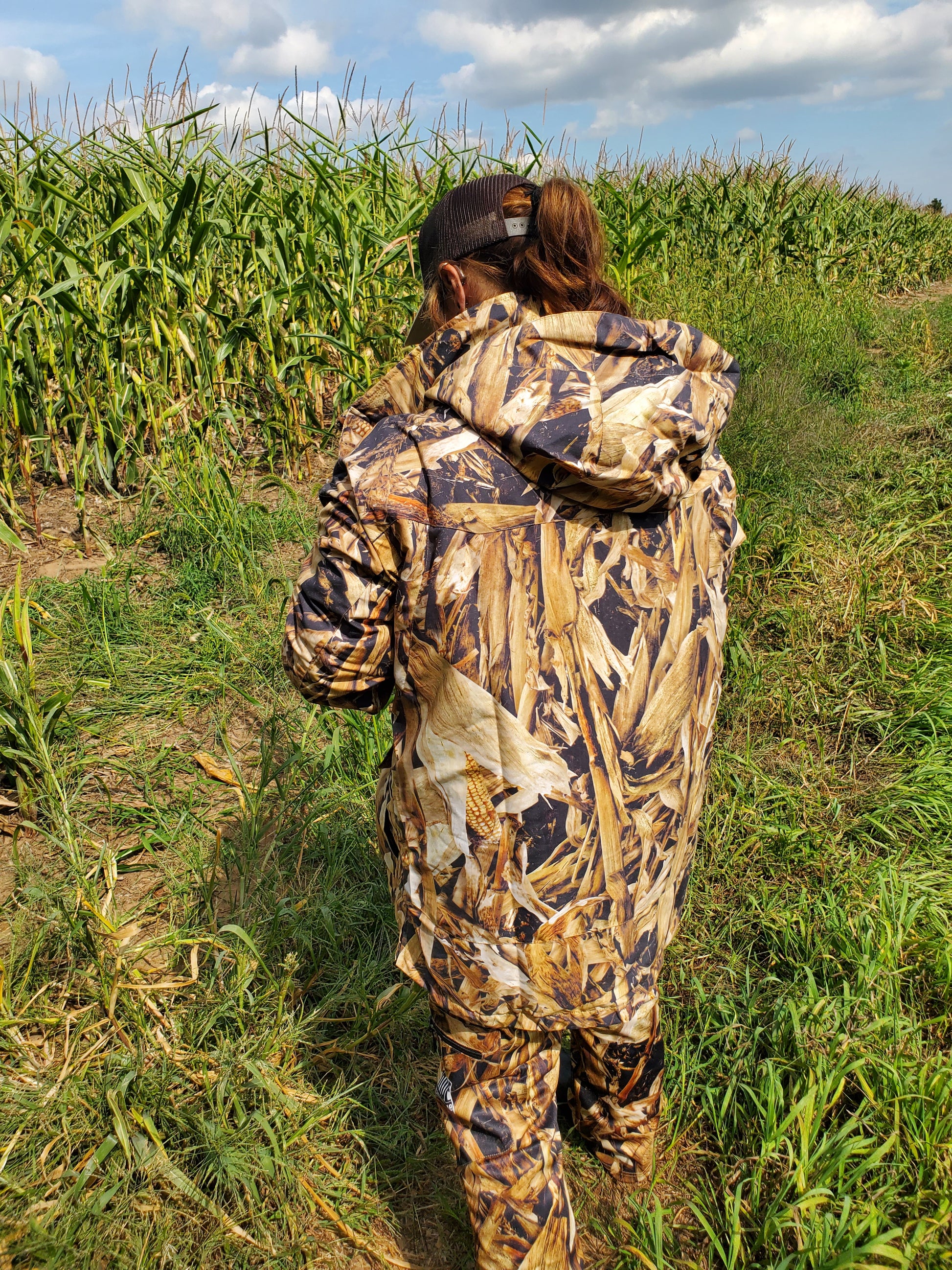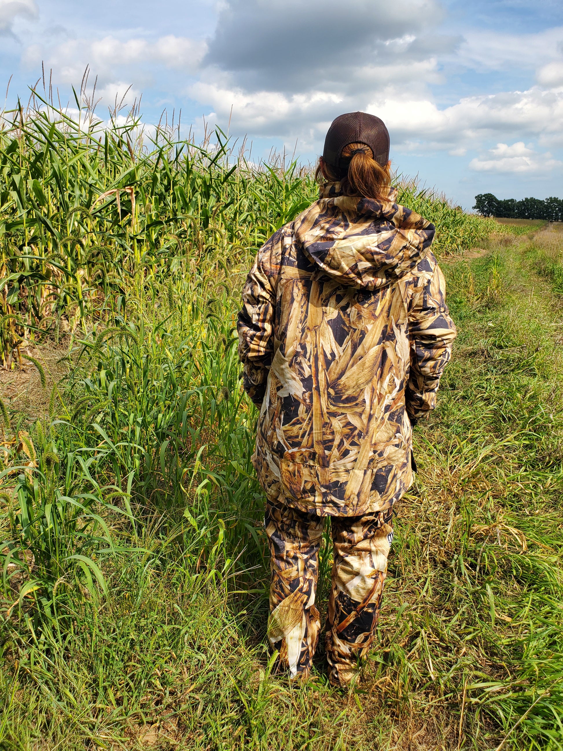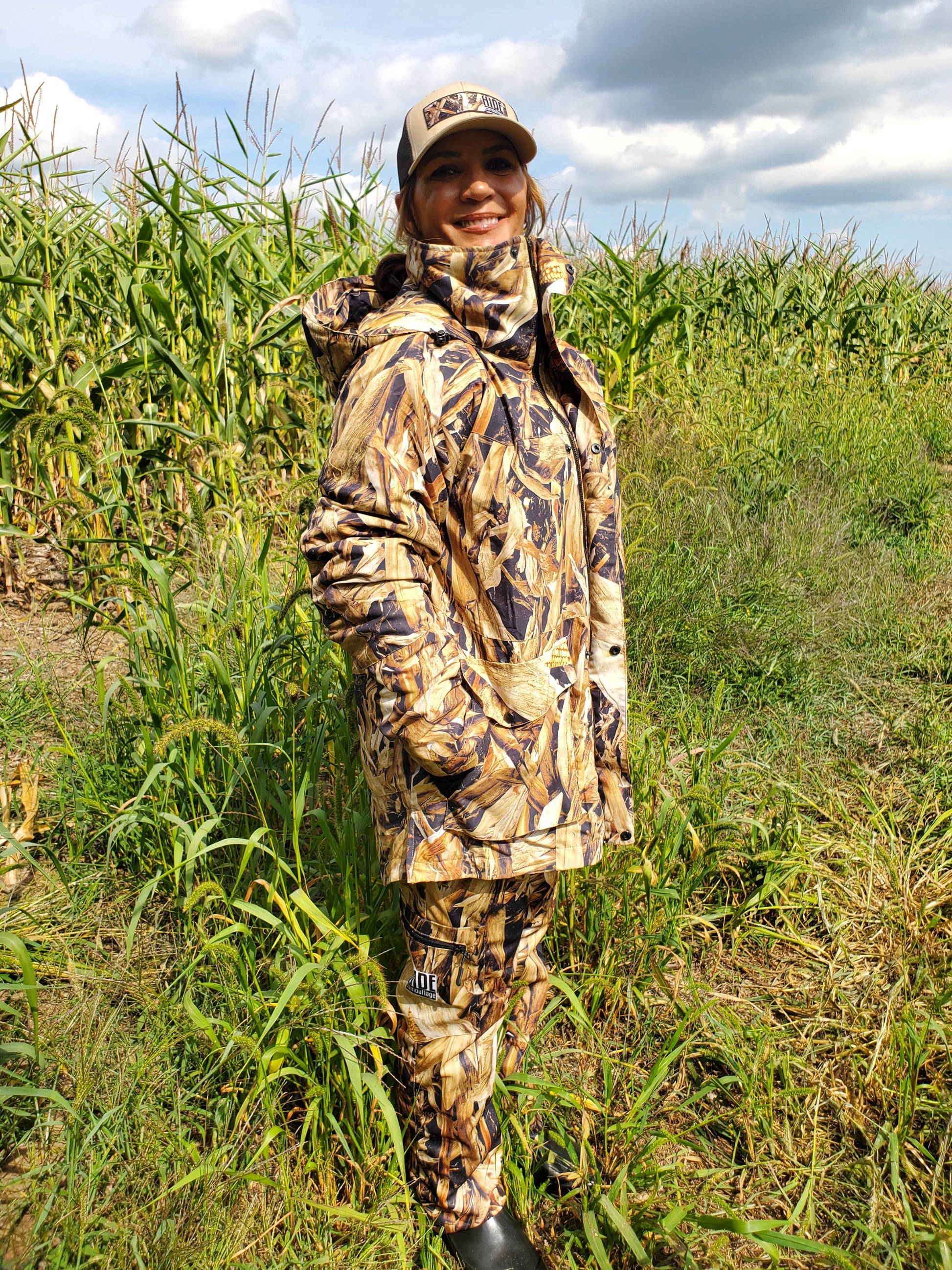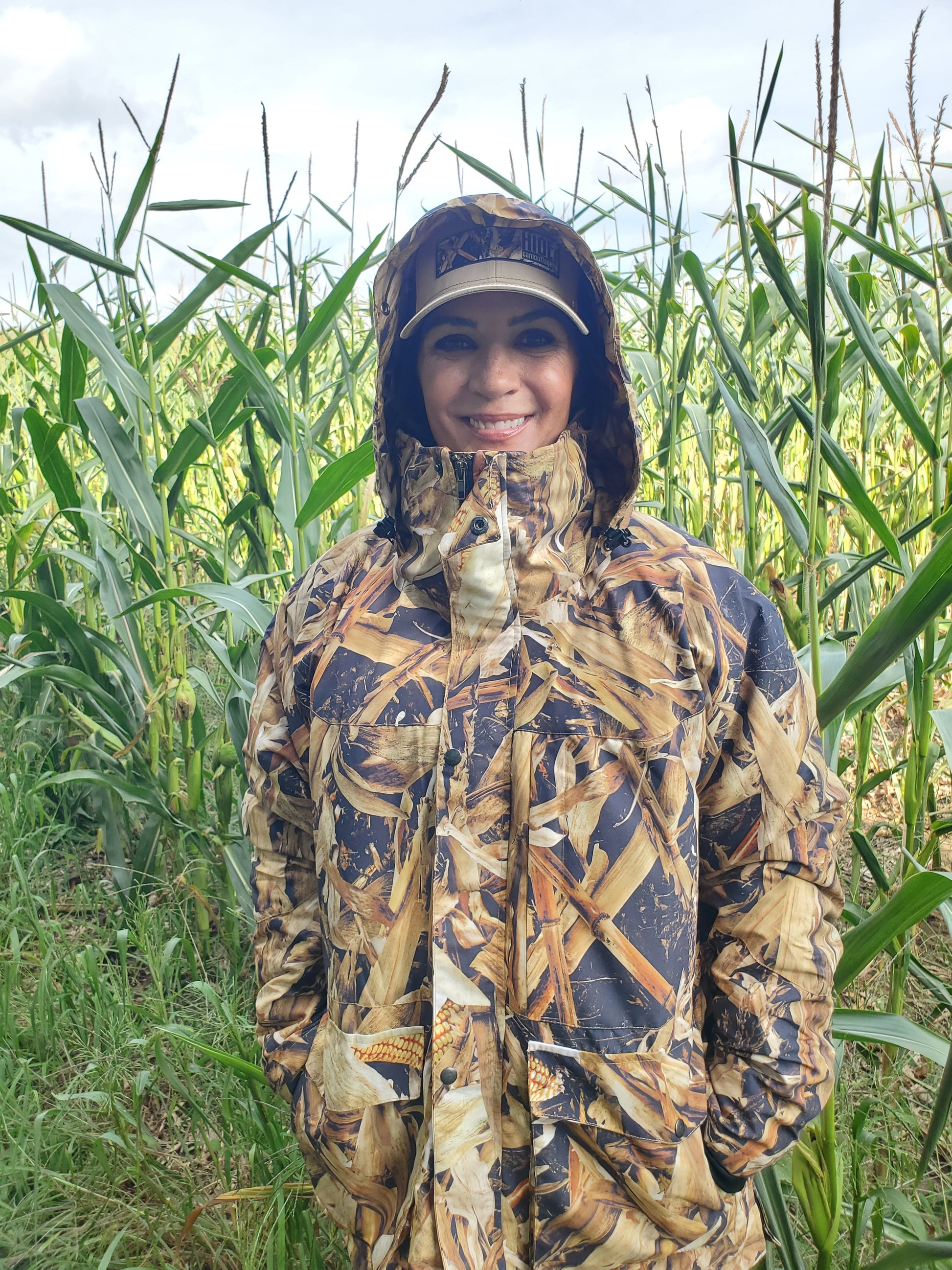I get many questions about female sizing so during this photo shoot I brought along Mrs. Hide Camouflage to illustrate how our clothing fits the female form. She is 5'4" and wearing a LARGE jacket... I am 5'11' and wearing an XL jacket