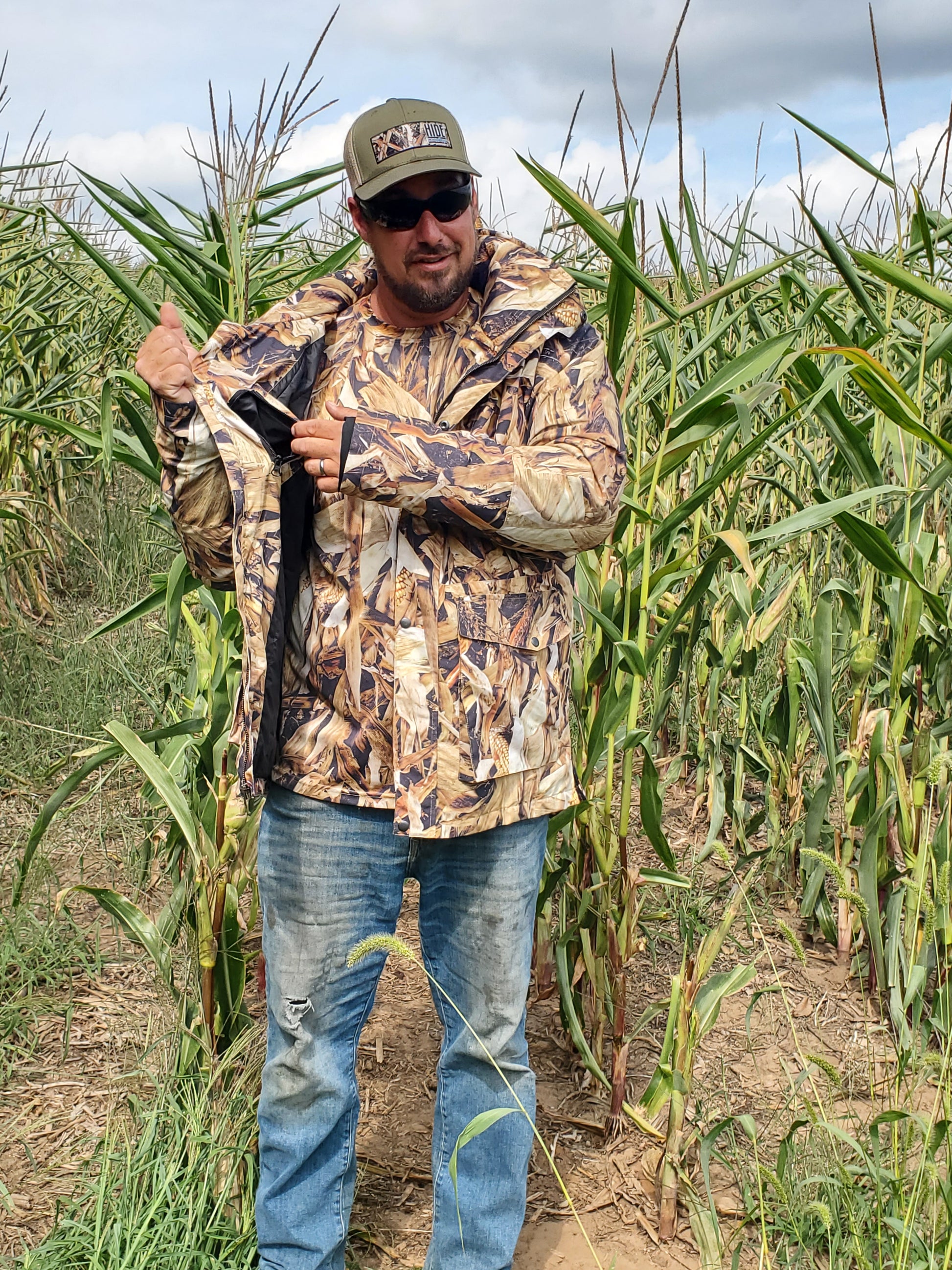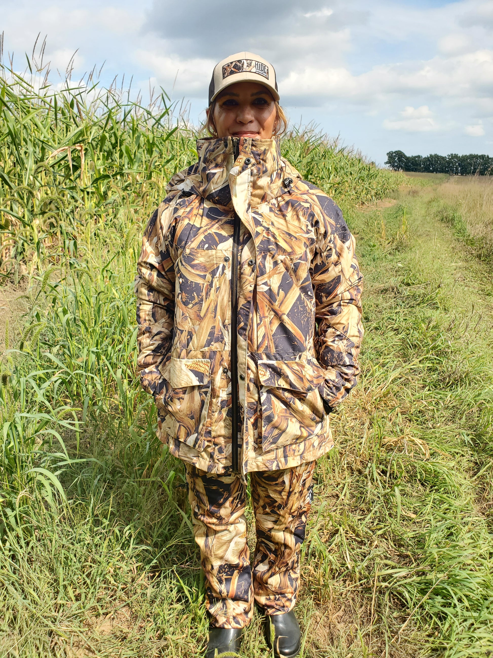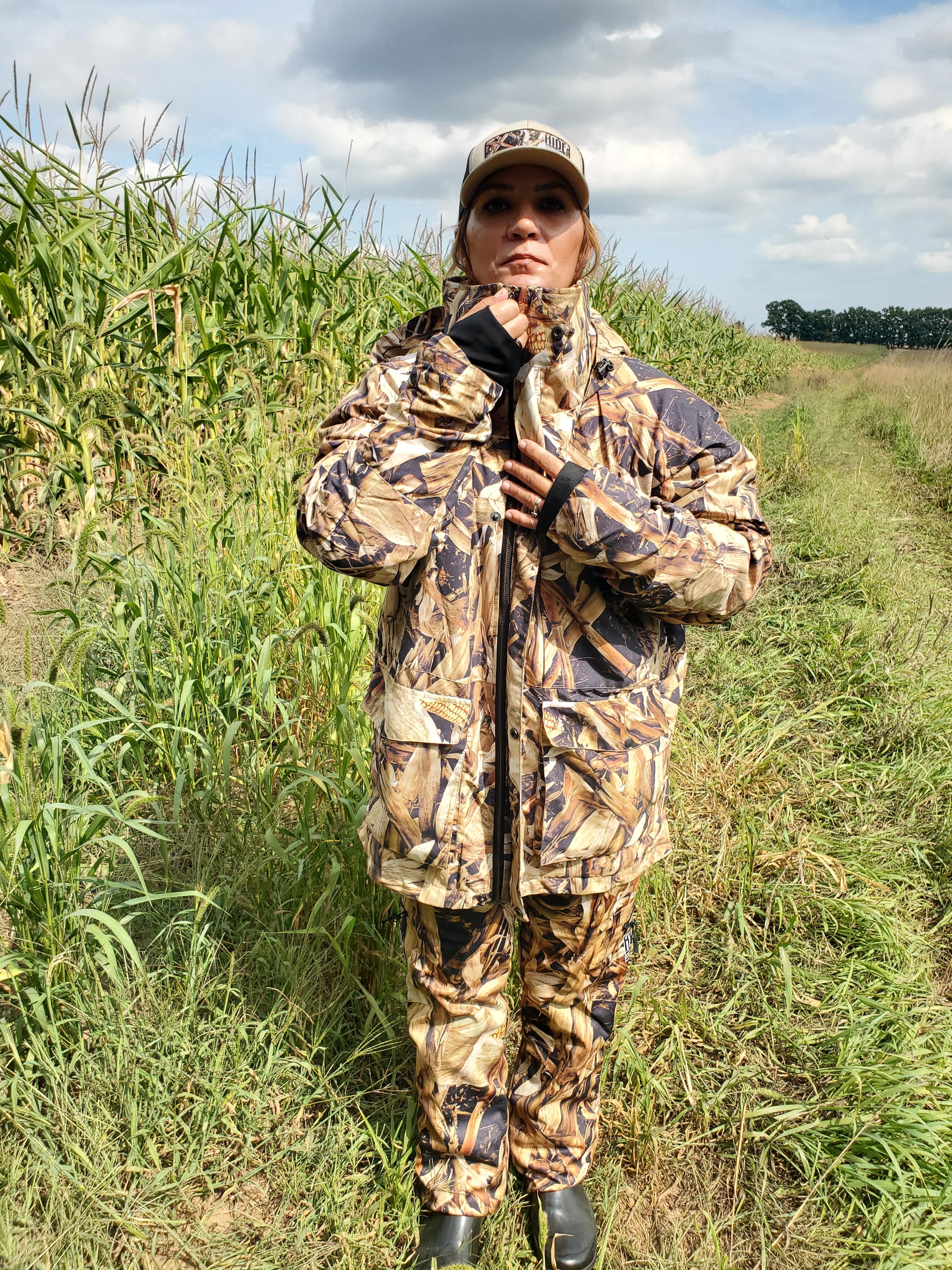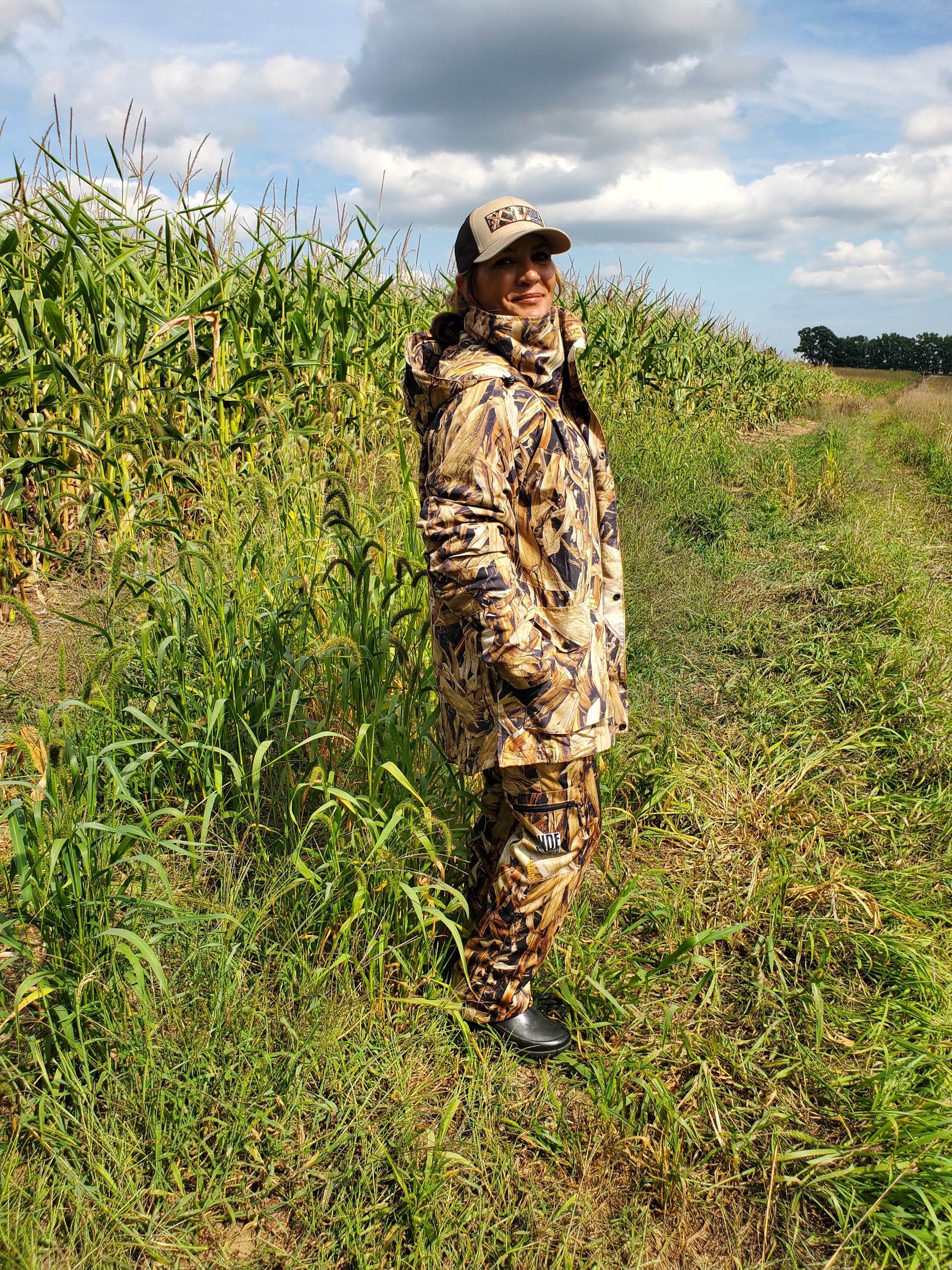 I get many questions about female sizing so during this photo shoot I brought along Mrs. Hide Camouflage to illustrate how our clothing fits the female form. She is 5'4" and wearing a LARGE jacket... I am 5'11' and wearing an XL jacket