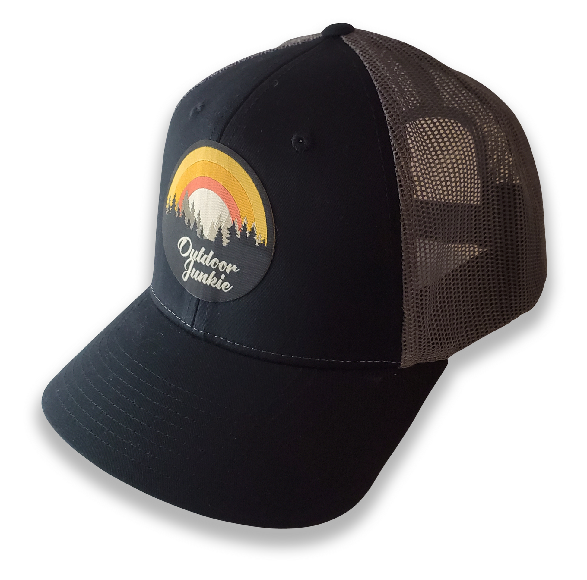 HIDE Camo "Outdoor Junkie" Patch Black Fabric/Charcoal Mesh 6 Panel Trucker Hat